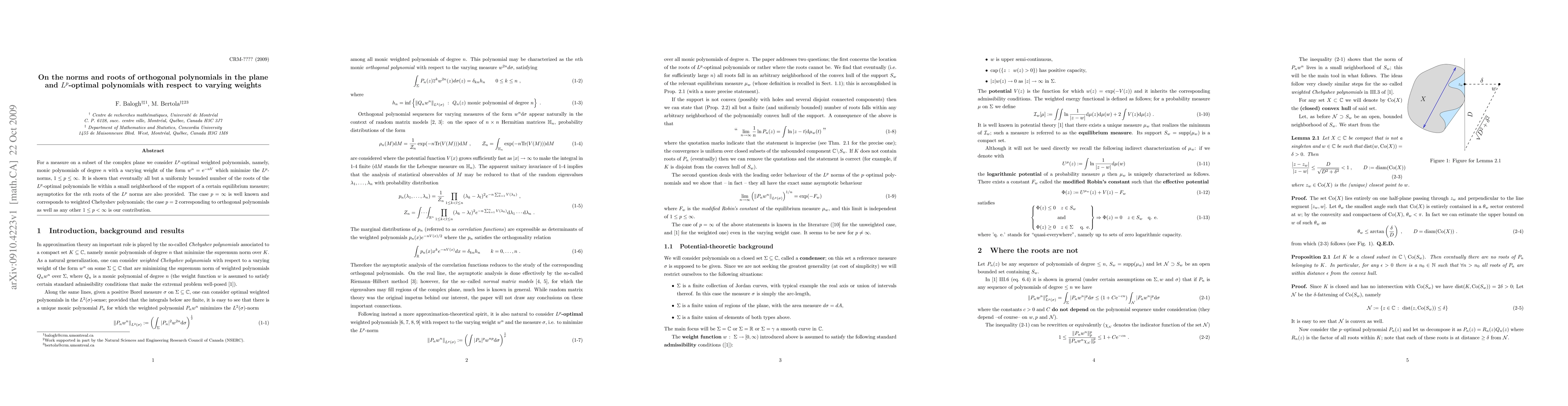 This paper studies $L^p$-optimal weighted polynomials, which minimize $L^p$-norms under a given weight. It shows that most roots of these polynomials concentrate near the support of an equilibrium measure and provides asymptotics for the $n$th roots of $L^p$ norms, particularly extending the case $p=2$ to orthogonal polynomials.