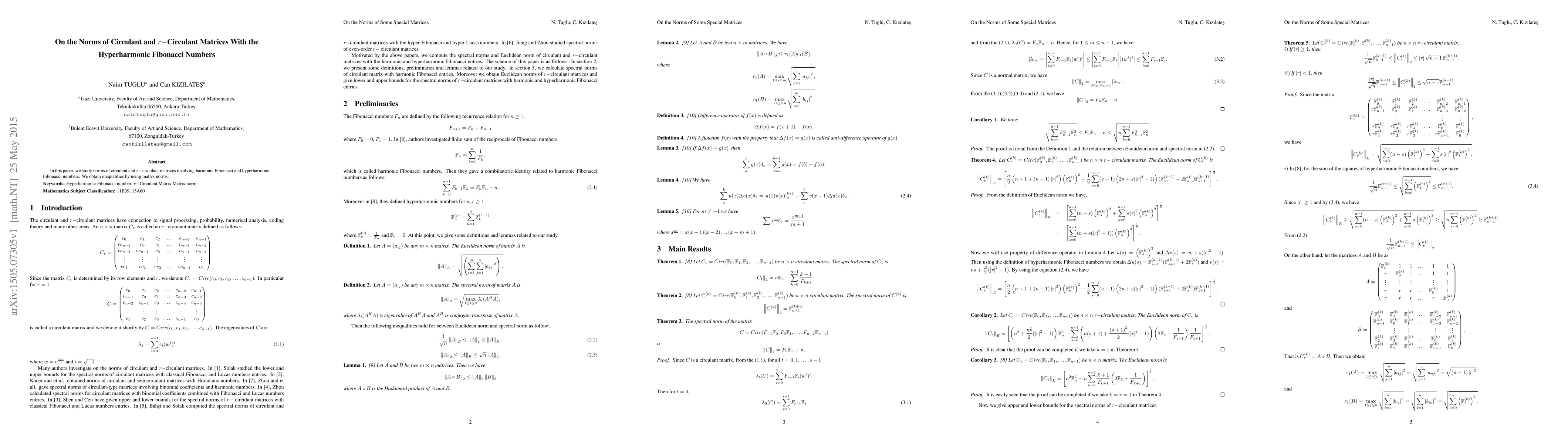 In this paper, we study norms of circulant and $r-$circulant matrices involving harmonic Fibonacci and hyperharmonic Fibonacci numbers. We obtain inequalities by using matrix norms.