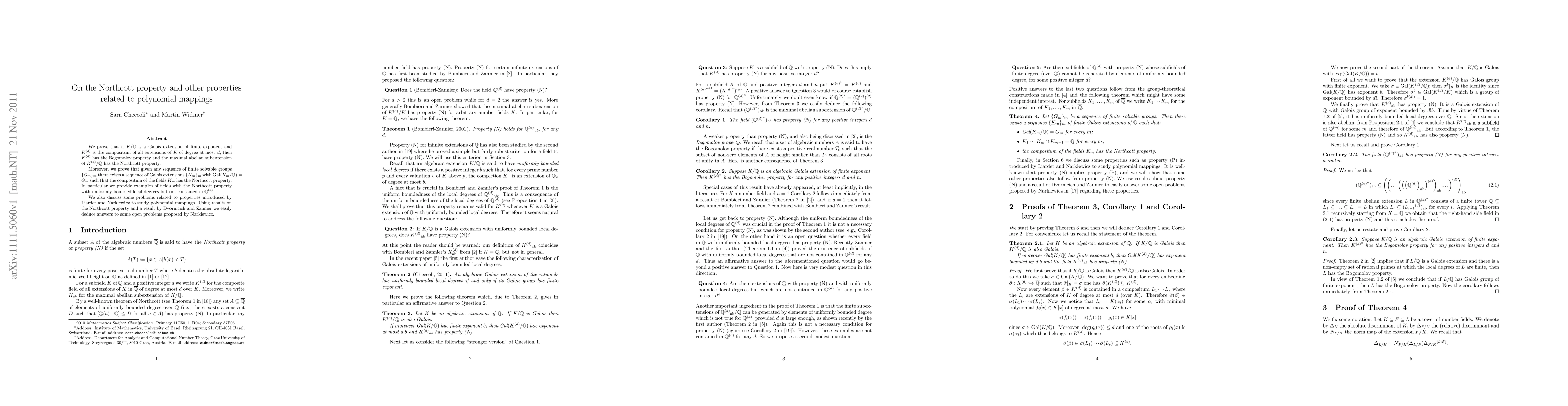 This paper proves that certain Galois extensions of finite exponent exhibit the Bogomolov and Northcott properties, and constructs examples of fields with the Northcott property. It also addresses open problems related to polynomial mappings using the Northcott property and results from Dvornicich and Zannier.