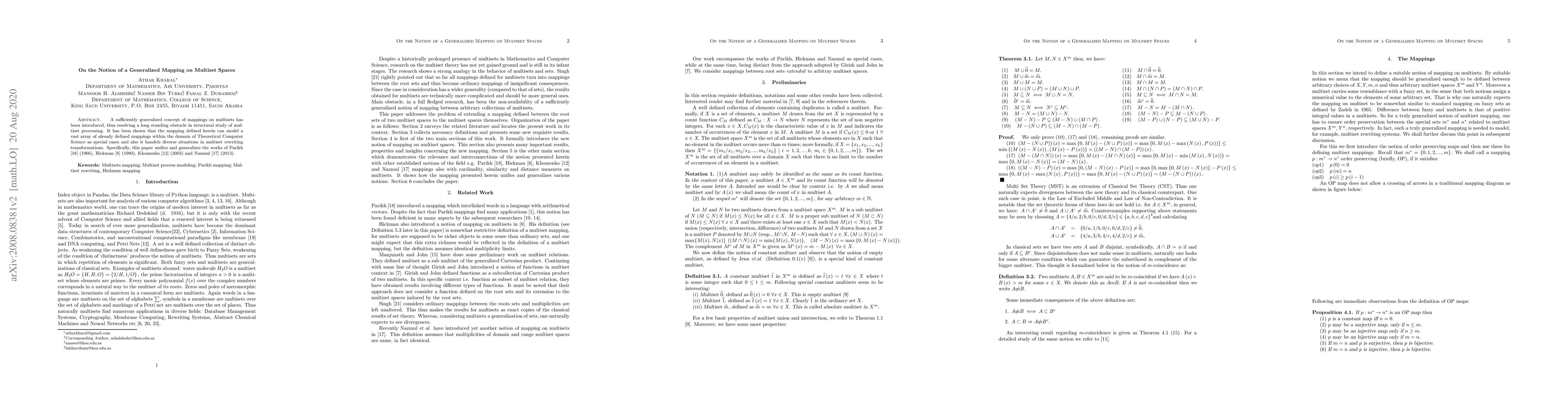 This work presents a generalized notion of multiset mapping thus resolving a long standing obstacle in structural study of multiset processing. It has been shown that the mapping defined herein can model a vast array of notions as special cases and also handels diverse situations in multiset rewriting transformations. Specifically, this paper unifies and generalizes the works of Parikh(1966), Hickman(1980), Khomenko(2003) and Nazmul(2013).