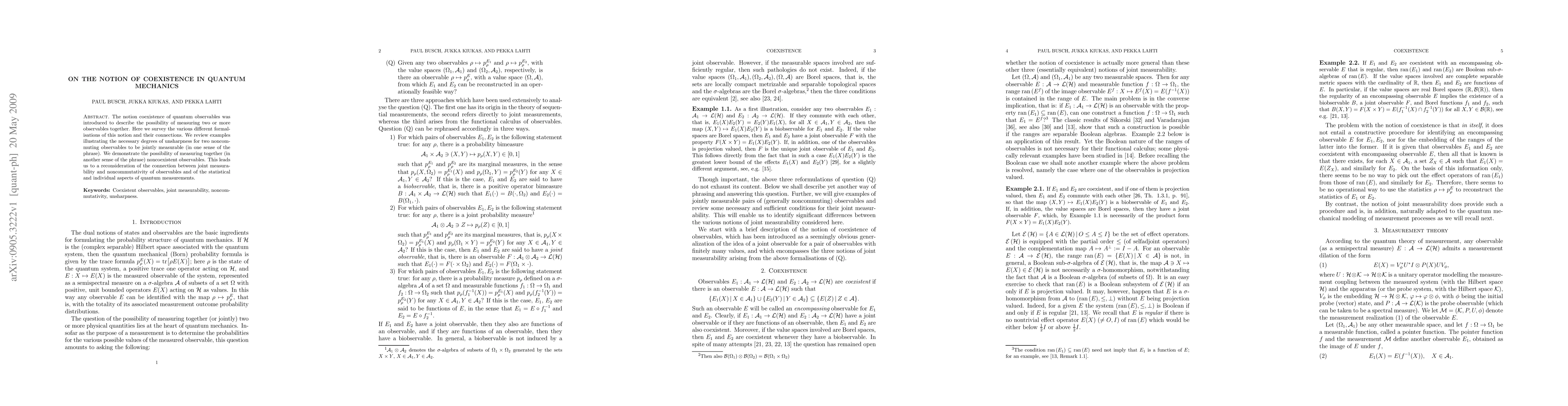 This paper explores the concept of coexistence in quantum mechanics, reviewing various formalizations and their connections, and illustrating the necessary unsharpness for jointly measurable noncommuting observables. It also reconsiders the relationship between joint measurability, noncommutativity, and the statistical and individual aspects of quantum measurements.