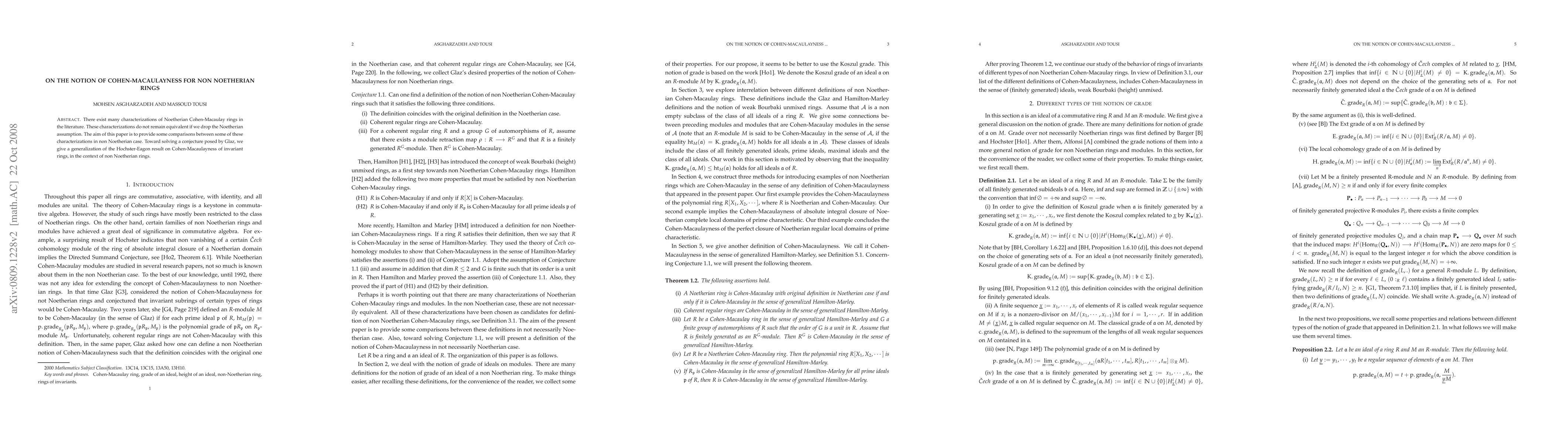 This paper explores the concept of Cohen-Macaulayness in non-Noetherian rings, comparing various characterizations that differ from those in the Noetherian case. It also generalizes a result by Hochster and Eagon regarding invariant rings, aiming to address a conjecture by Glaz in the non-Noetherian setting.