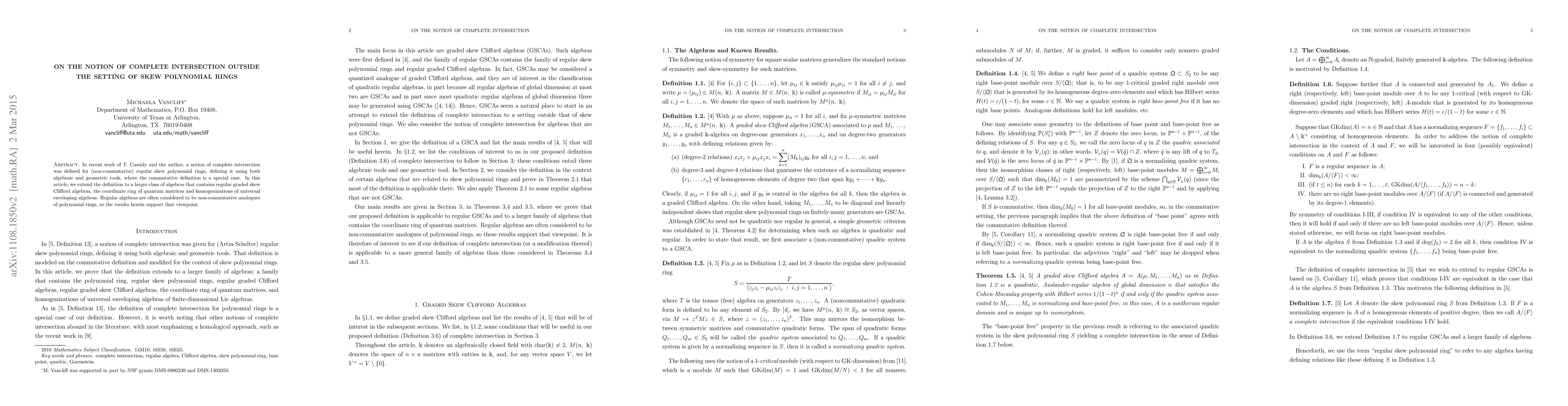 Researchers extend the concept of complete intersection to a broader class of algebras, supporting the idea that regular algebras are non-commutative analogues of polynomial rings.