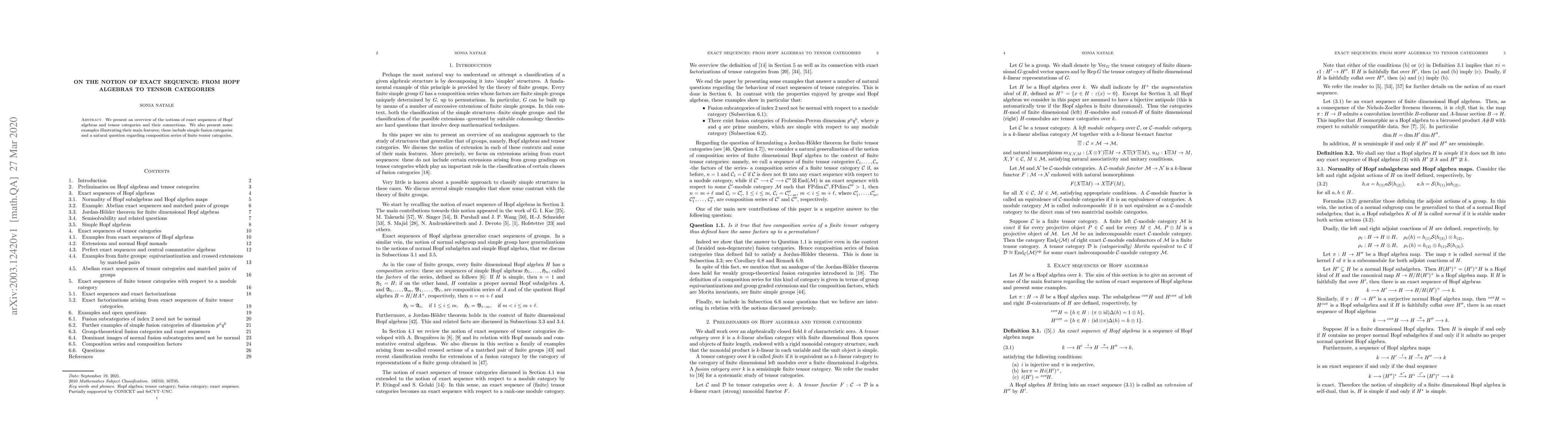 This paper explores connections between Hopf algebras and tensor categories, focusing on exact sequences, examples, and implications for fusion categories and composition series in finite tensor categories.