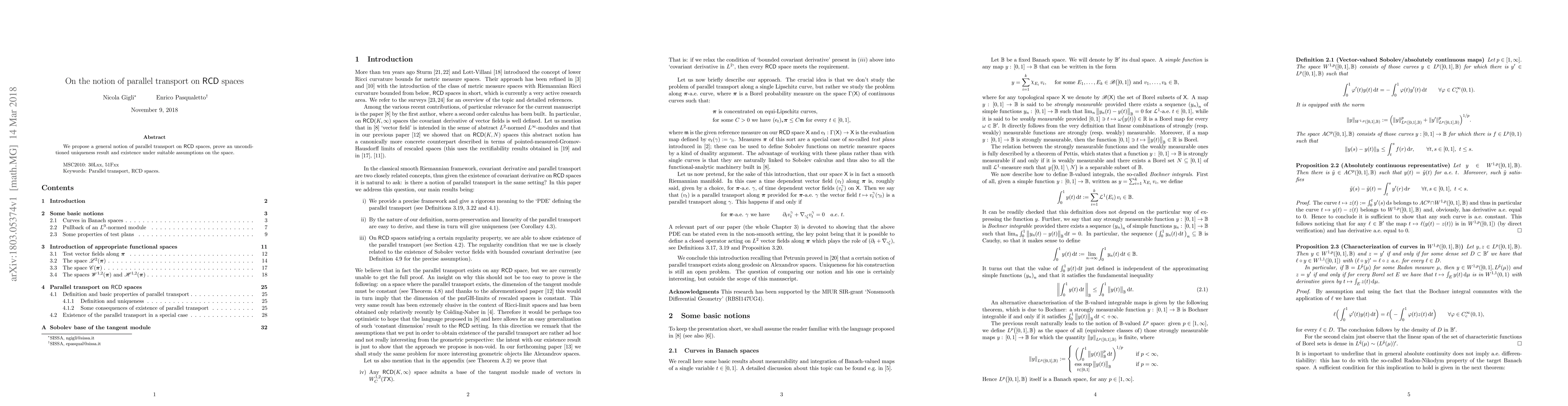 This paper introduces a generalized concept of parallel transport on $\sf RCD$ spaces, demonstrating unconditional uniqueness of such transport and proving its existence given specific conditions on the underlying space.