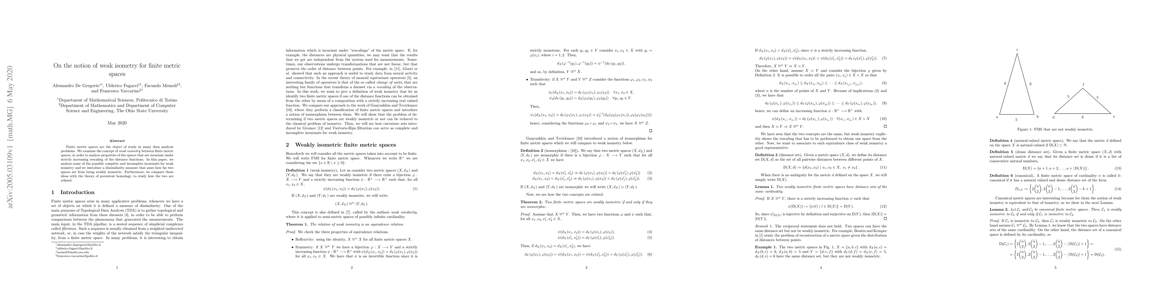 This paper explores the concept of weak isometry for finite metric spaces, focusing on properties invariant under strictly increasing rescaling of distance functions. It introduces a dissimilarity measure to gauge the distance between two spaces and compares these ideas with persistent homology.