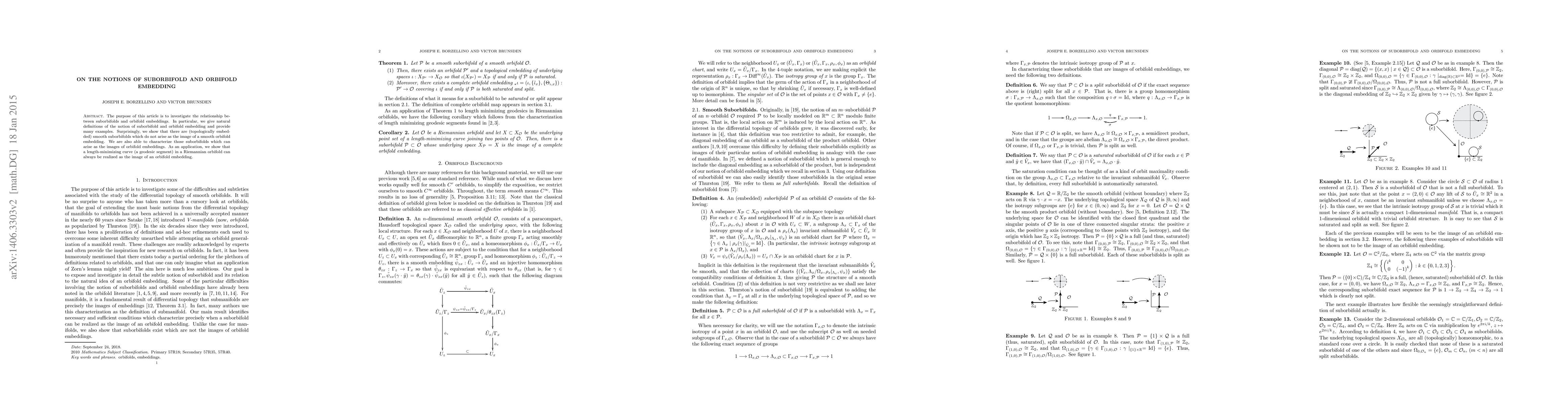 The purpose of this article is to investigate the relationship between suborbifolds and orbifold embeddings. In particular, we give natural definitions of the notion of suborbifold and orbifold embedding and provide many examples. Surprisingly, we show that there are (topologically embedded) smooth suborbifolds which do not arise as the image of a smooth orbifold embedding. We are also able to characterize those suborbifolds which can arise as the images of orbifold embeddings. As an application, we show that a length-minimizing curve (a geodesic segment) in a Riemannian orbifold can always be realized as the image of an orbifold embedding.