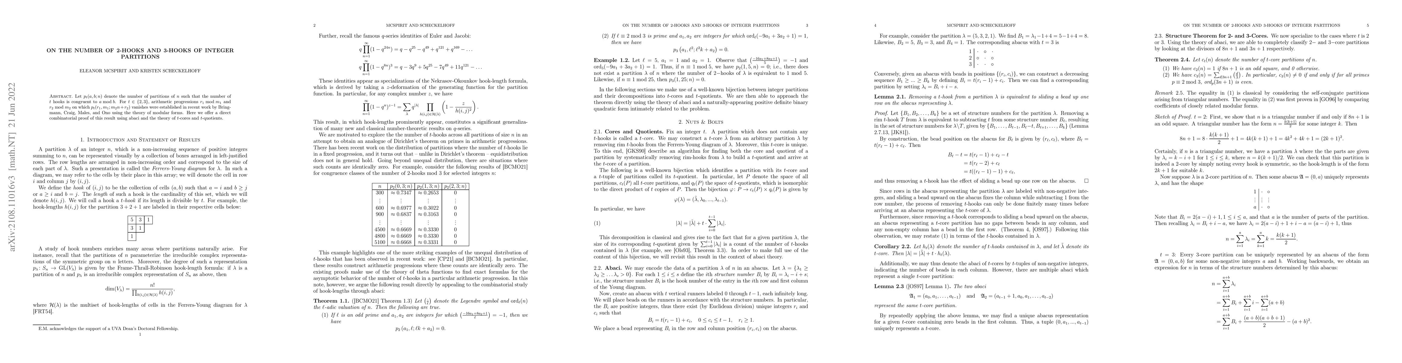 This paper provides a direct combinatorial proof for arithmetic progressions related to partitions with specific numbers of hooks, using abaci and t-cores/t-quotients theory.