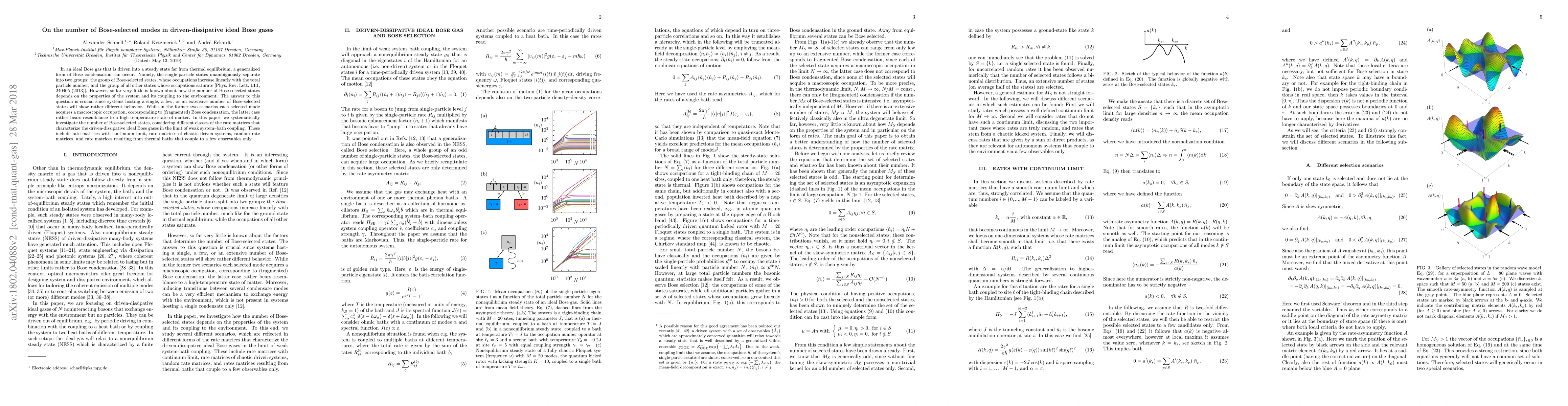 This paper investigates the number of Bose-selected modes in driven-dissipative ideal Bose gases, exploring how different rate matrices influence the occupation of these modes. It finds that the number of such modes critically affects the system's behavior, distinguishing between fragmented Bose condensation and high-temperature states of matter.