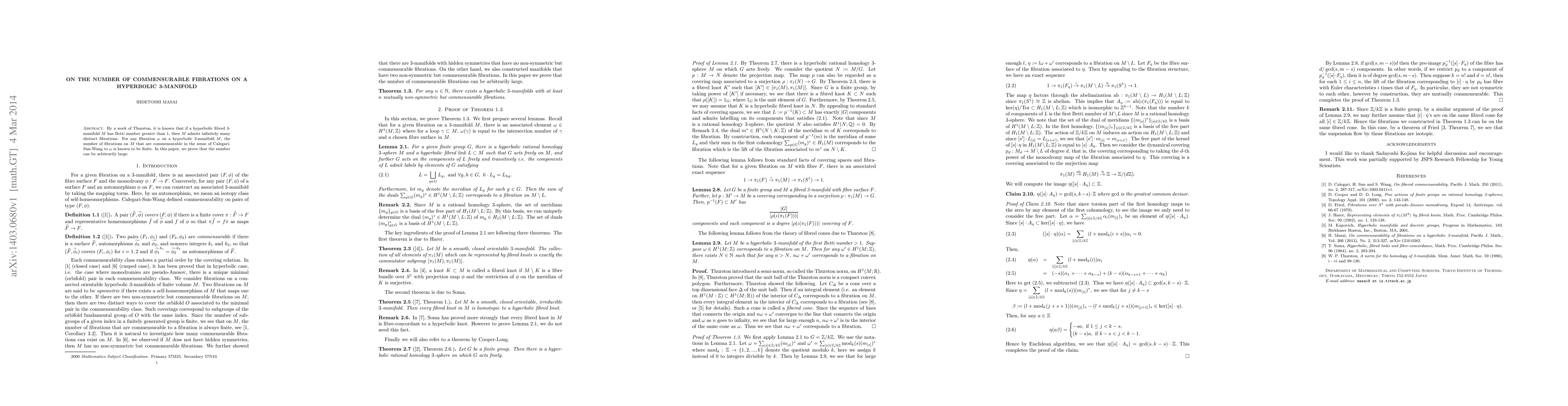 This paper proves that for hyperbolic 3-manifolds with a Betti number greater than 1, the number of fibrations commensurable to a given fibration can be made arbitrarily large. This extends the understanding of the variety of distinct fibrations on such manifolds.