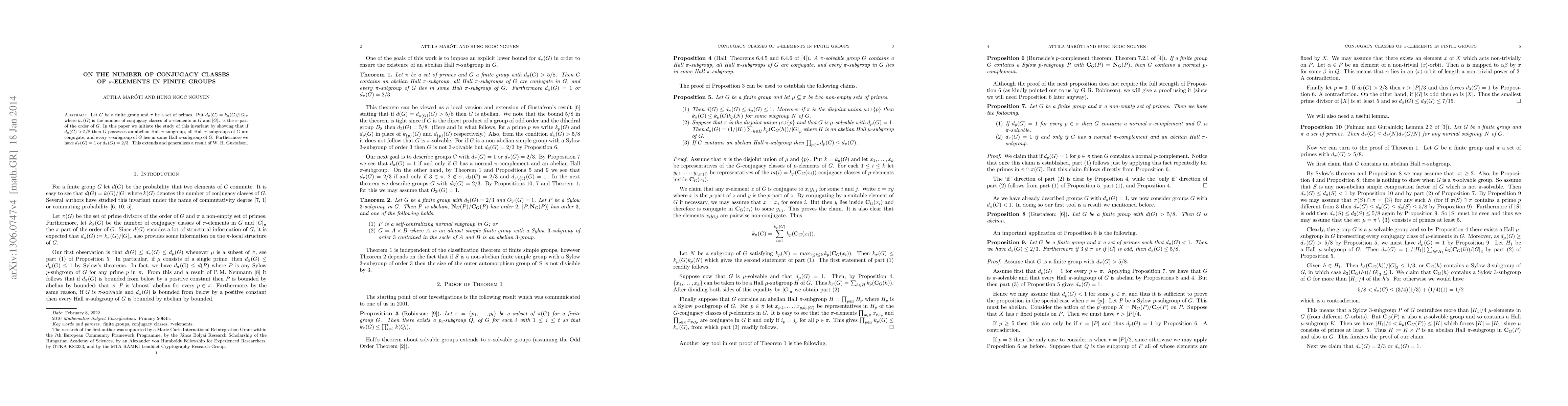 Let $G$ be a finite group and $\pi$ be a set of primes. We show that if the number of conjugacy classes of $\pi$-elements in $G$ is larger than $5/8$ times the $\pi$-part of $|G|$ then $G$ possesses an abelian Hall $\pi$-subgroup which meets every conjugacy class of $\pi$-elements in $G$. This extends and generalizes a result of W. H. Gustafson.
