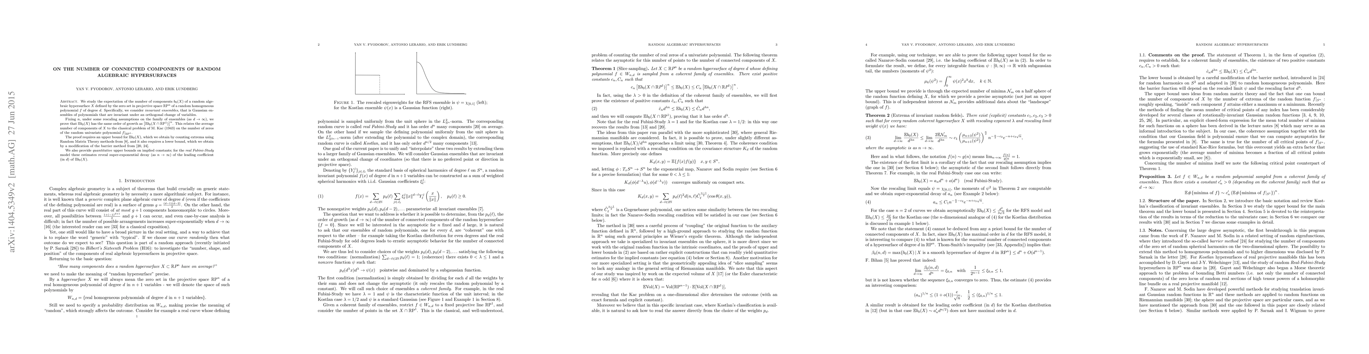 The research paper studies the number of connected components of random algebraic hypersurfaces in projective space, finding that the average number of components grows like the nth power of the average number of components in a lower-dimensional subspace.
