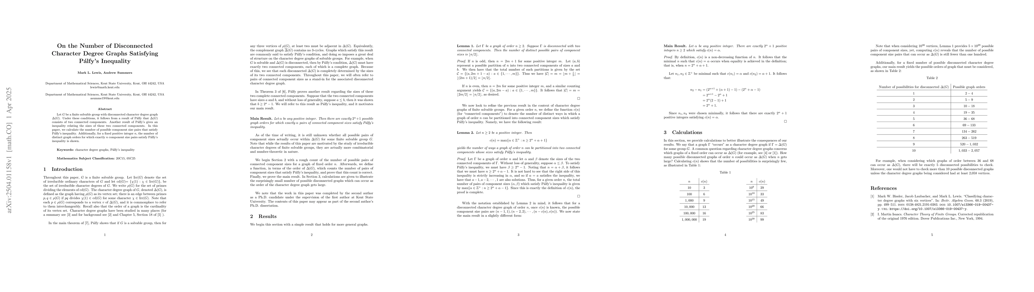 The paper investigates how many disconnected character degree graphs can satisfy Pálfy's inequality, counting distinct graph orders for specific component size pairs.