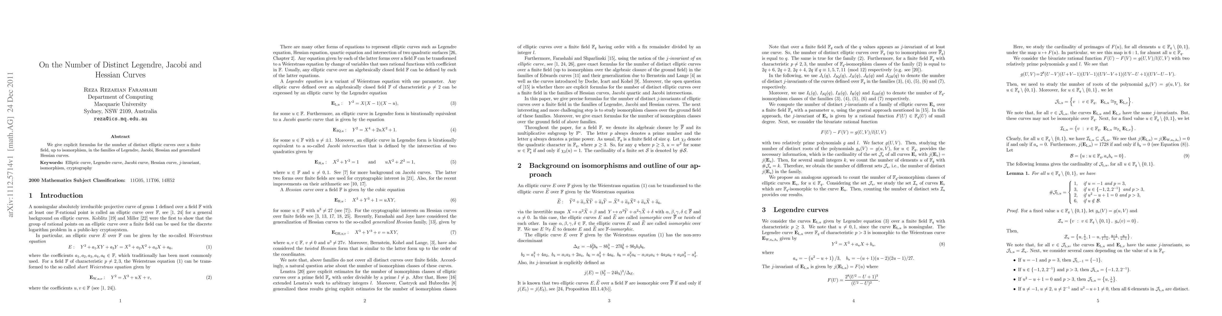 Summary: This paper provides explicit formulas for counting distinct elliptic curves over finite fields in the specific families of Legendre, Jacobi, Hessian, and generalized Hessian curves, up to isomorphism. The results offer a comprehensive understanding of these curve families' structures.