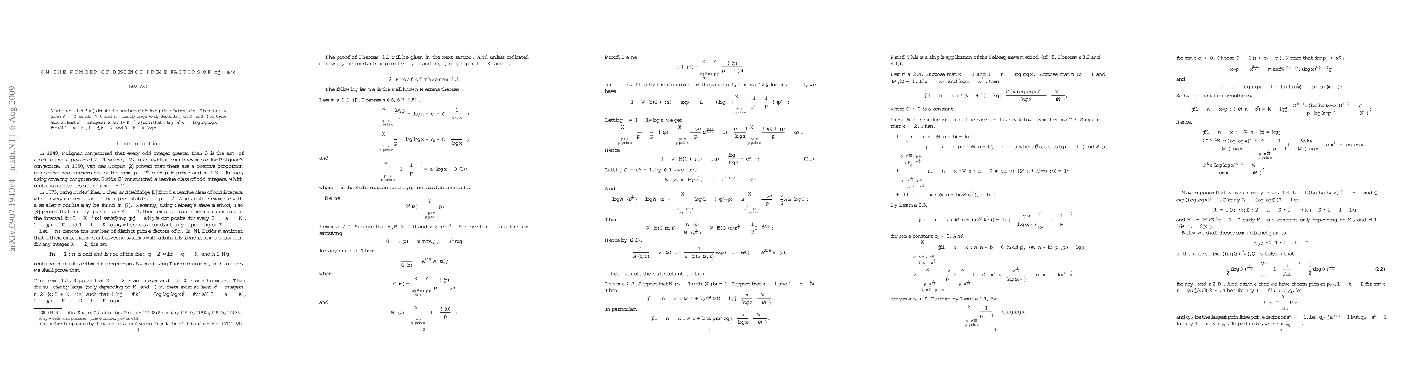 Let $\omega(n)$ denote the number of distinct prime factors of $n$. Then for any given $K\geq 2$, small $\epsilon>0$ and sufficiently large (only depending on $K$ and $\epsilon$) $x$, there exist at least $x^{1-\epsilon}$ integers $n\in[x,(1+K^{-1})x]$ such that $\omega(nj\pm a^hk)\geq(\log\log\log x)^{{1/3}-\epsilon}$ for all $2\leq a\leq K$, $1\leq j,k\leq K$ and $0\leq h\leq K\log x$.