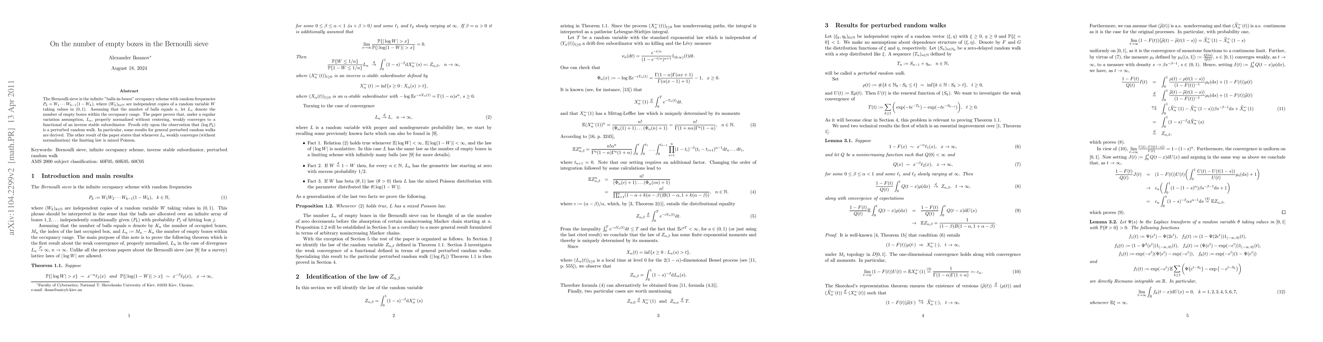The Bernoulli sieve is the infinite "balls-in-boxes" occupancy scheme with random frequencies $P_k=W_1...W_{k-1}(1-W_k)$, where $(W_k)_{k\in\mn}$ are independent copies of a random variable $W$ taking values in $(0,1)$. Assuming that the number of balls equals $n$, let $L_n$ denote the number of empty boxes within the occupancy range. The paper proves that, under a regular variation assumption, $L_n$, properly normalized without centering, weakly converges to a functional of an inverse stable subordinator. Proofs rely upon the observation that $(\log P_k)$ is a perturbed random walk. In particular, some results for general perturbed random walks are derived. The other result of the paper states that whenever $L_n$ weakly converges (without normalization) the limiting law is mixed Poisson.
