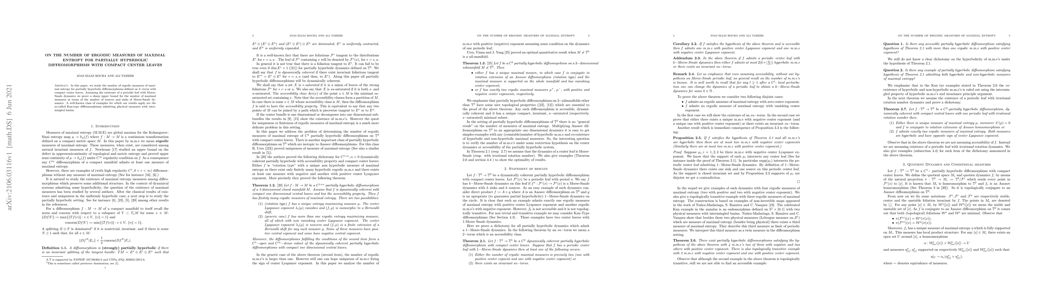 This paper investigates the count of ergodic measures of maximal entropy for partially hyperbolic diffeomorphisms on a 3-torus with compact center leaves. It establishes a precise upper bound for these measures based on the number of sources and sinks in the associated Morse-Smale dynamics, with applications to Kan-type diffeomorphisms.