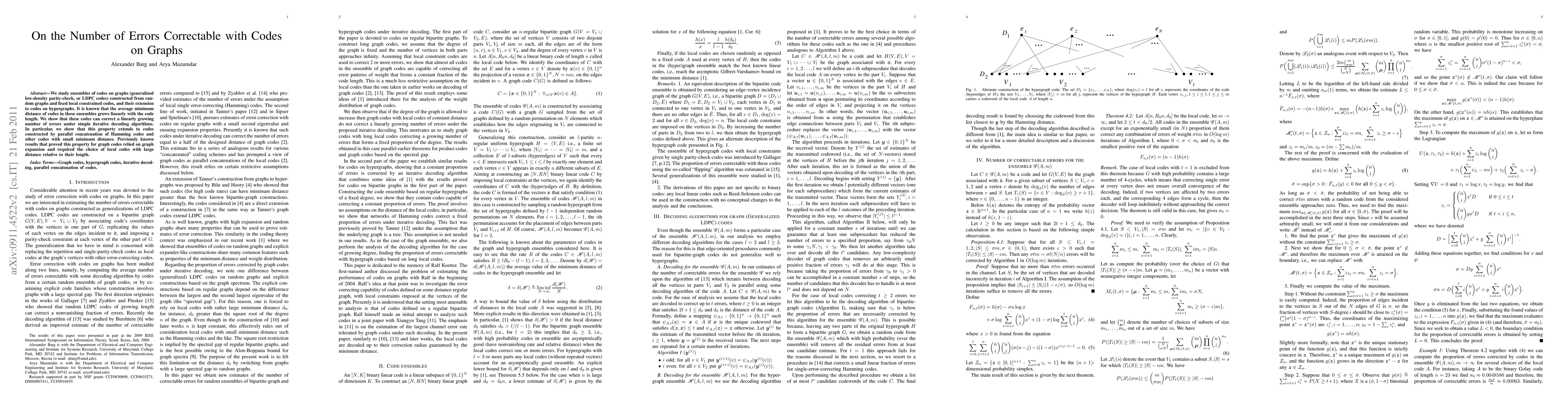 We study ensembles of codes on graphs (generalized low-density parity-check, or LDPC codes) constructed from random graphs and fixed local constrained codes, and their extension to codes on hypergraphs. It is known that the average minimum distance of codes in these ensembles grows linearly with the code length. We show that these codes can correct a linearly growing number of errors under simple iterative decoding algorithms. In particular, we show that this property extends to codes constructed by parallel concatenation of Hamming codes and other codes with small minimum distance. Previously known results that proved this property for graph codes relied on graph expansion and required the choice of local codes with large distance relative to their length.