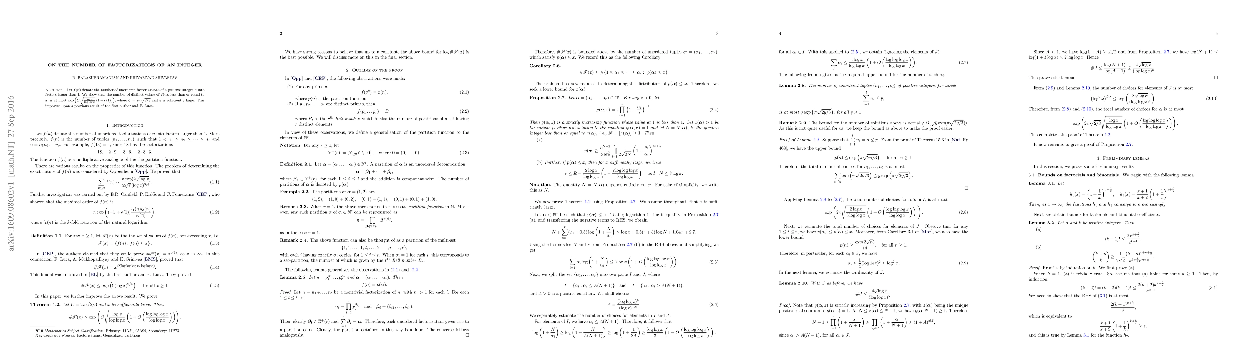 Let $f(n)$ denote the number of unordered factorizations of a positive integer $n$ into factors larger than $1$. We show that the number of distinct values of $f(n)$, less than or equal to $x$, is at most $\exp \left( C \sqrt{\frac{\log x}{\log \log x}} \left( 1 + o(1) \right) \right)$, where $C=2\pi\sqrt{2/3}$ and $x$ is sufficiently large. This improves upon a previous result of the first author and F. Luca.