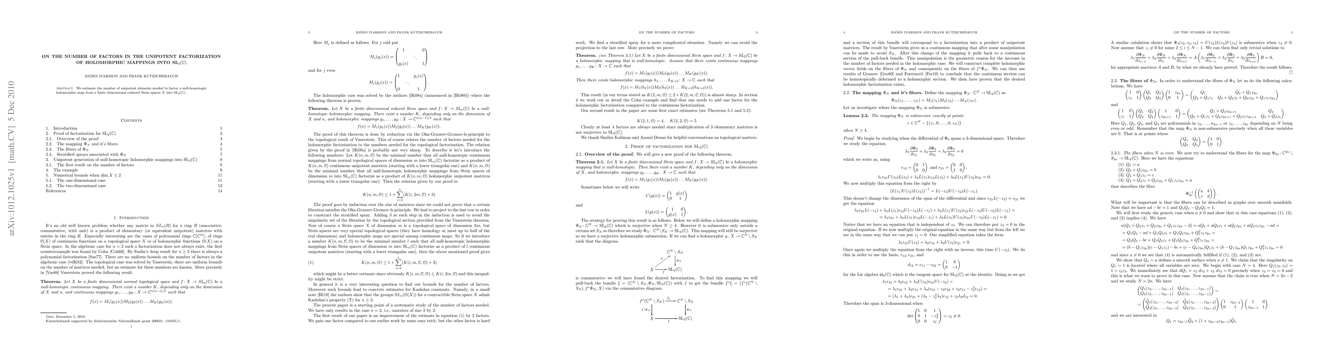 Researchers estimate the minimum number of unipotent elements needed to factor a holomorphic map from a reduced Stein space into SL_2(C), with implications for understanding null-homotopic maps.