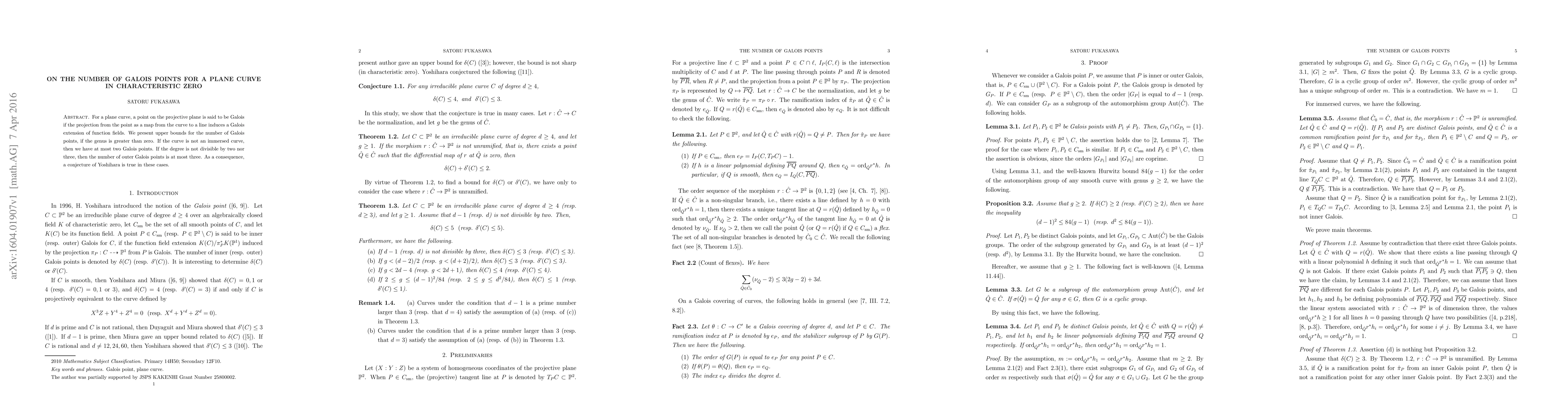 This paper provides upper bounds on the number of Galois points for plane curves in characteristic zero, showing that non-immersed curves have at most two Galois points, and curves with degrees not divisible by two or three have at most three outer Galois points, thereby confirming a conjecture of Yoshihara in these specific cases.