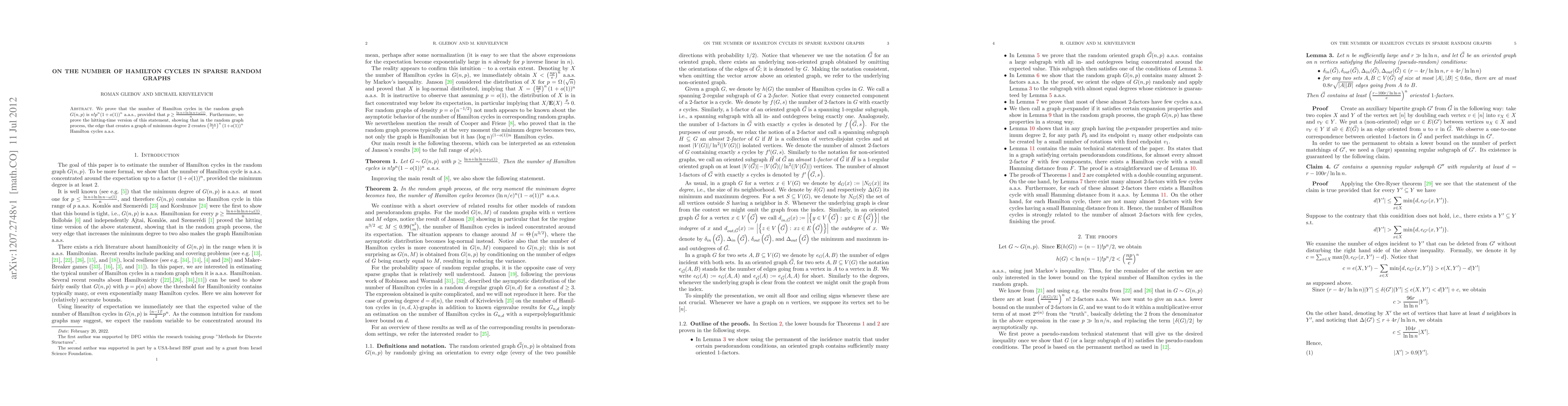 We prove that the number of Hamilton cycles in the random graph G(n,p) is n!p^n(1+o(1))^n a.a.s., provided that p\geq (ln n+ln ln n+\omega(1))/n. Furthermore, we prove the hitting-time version of this statement, showing that in the random graph process, the edge that creates a graph of minimum degree 2 creates (ln n/e)^n(1+o(1))^n Hamilton cycles a.a.s.
