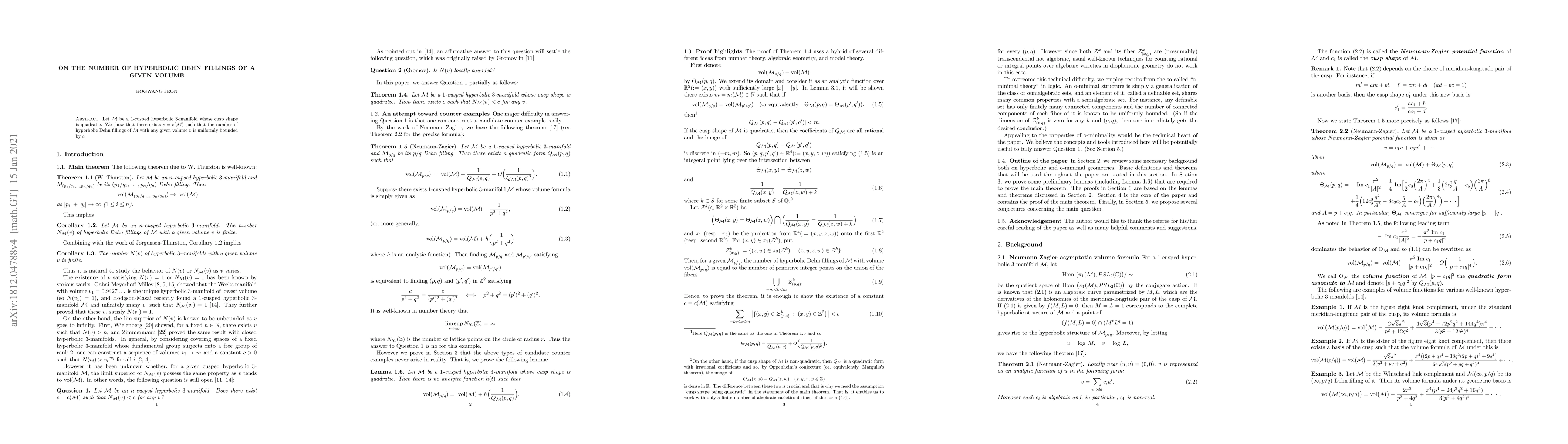 Let M be a 1-cusped hyperbolic 3-manifold whose cusp shape is quadratic. We show that there exists c=c(M) such that the number of hyperbolic Dehn fillings of M with any given volume v is uniformly bounded by c.