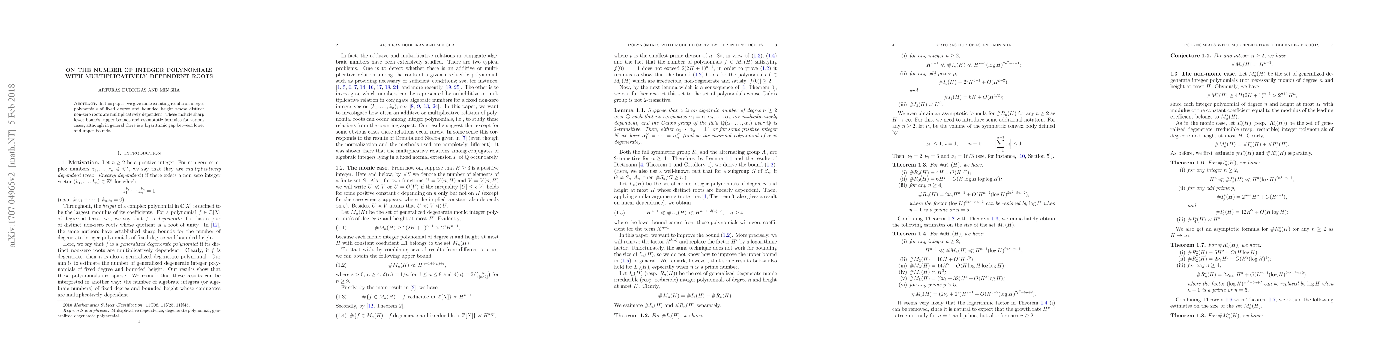 This paper provides counting results for integer polynomials of fixed degree and bounded height with distinct non-zero roots that are multiplicatively dependent, including sharp lower bounds, upper bounds, and asymptotic formulas, though a logarithmic gap generally exists between the two.
