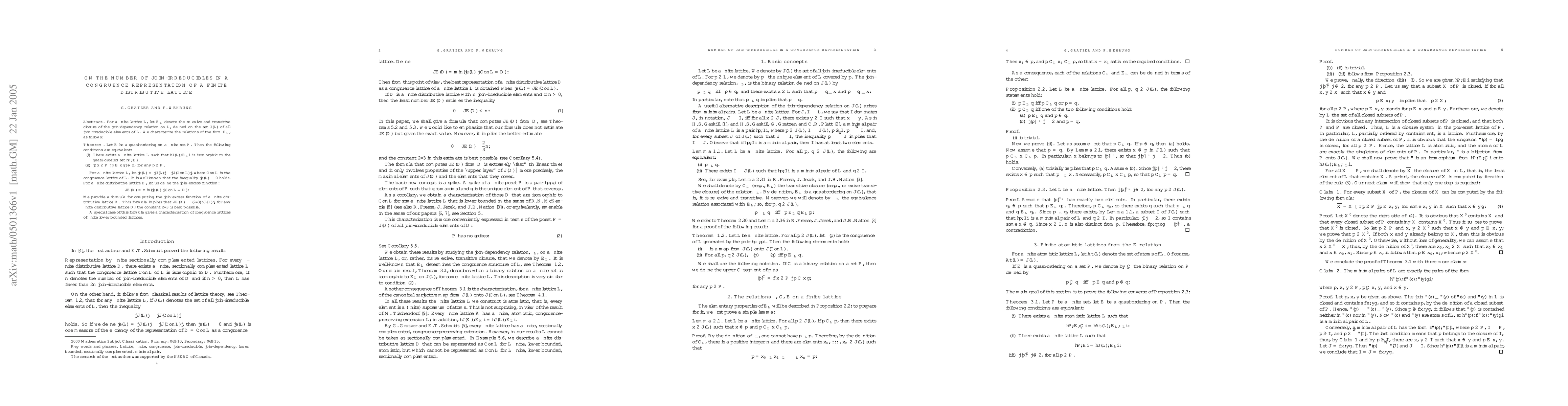 For a finite lattice L, let EL denote the reflexive and transitive closure of the join-dependency relation on L, defined on the set J(L) of all join-irreducible elements of L. We characterize the relations of the form EL, as follows: Theorem. Let E be a quasi-ordering on a finite set P. Then the following conditions are equivalent: (i) There exists a finite lattice L such that (J(L),EL) is isomorphic to the quasi-ordered set (P,E). (ii) There are not exactly two elements x in P such that p E x, for any p in P. For a finite lattice L, let je(L) = |J(L)|-|J(Con L)|, where Con L is the congruence lattice of L. It is well-known that the inequality je(L) $\ge$ 0 holds. For a finite distributive lattice D, let us define the join-excess function: JE(D) = min(je(L) | Con L isomorphic to D). We provide a formula for computing the join-excess function of a finite distributive lattice D. This formula implies that JE(D) $\le$ (2/3)| J(D)|, for any finite distributive lattice D; the constant 2/3 is best possible. A special case of this formula gives a characterization of congruence lattices of finite lower bounded lattices.