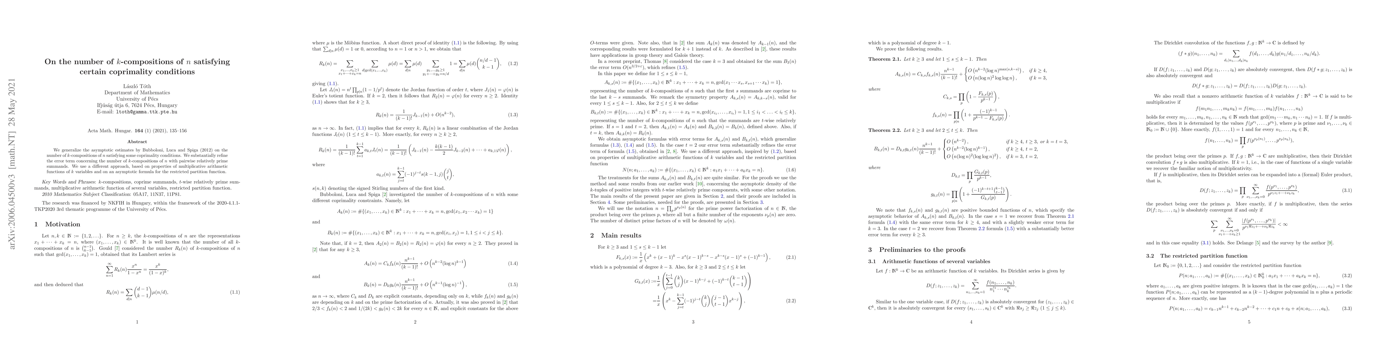We generalize the asymptotic estimates by Bubboloni, Luca and Spiga (2012) on the number of $k$-compositions of $n$ satisfying some coprimality conditions. We substantially refine the error term concerning the number of $k$-compositions of $n$ with pairwise relatively prime summands. We use a different approach, based on properties of multiplicative arithmetic functions of $k$ variables and on an asymptotic formula for the restricted partition function.