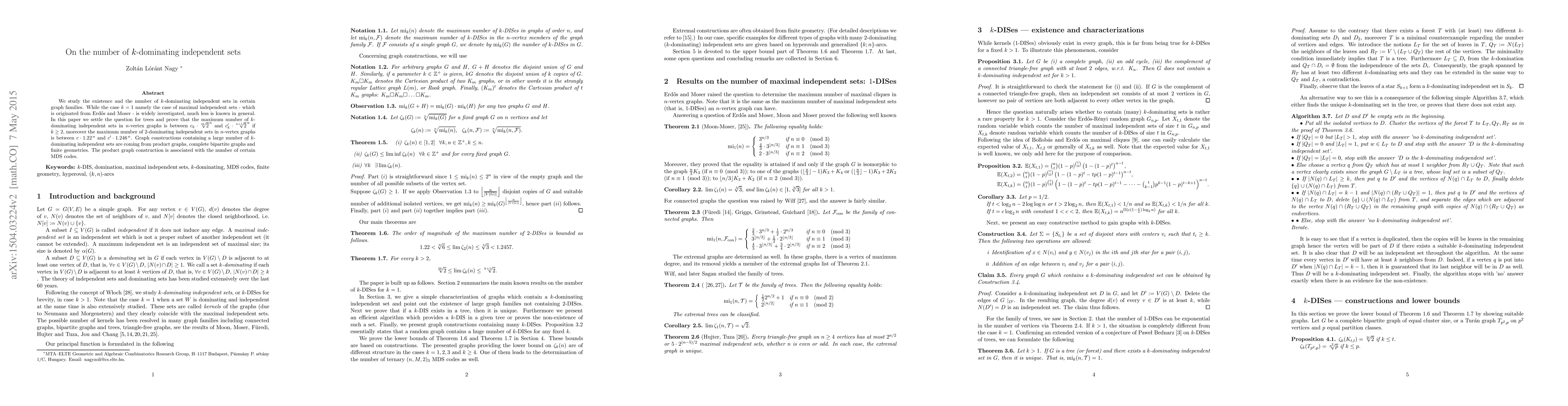 We study the existence and the number of $k$-dominating independent sets in certain graph families. While the case $k=1$ namely the case of maximal independent sets - which is originated from Erd\H{o}s and Moser - is widely investigated, much less is known in general. In this paper we settle the question for trees and prove that the maximum number of $k$-dominating independent sets in $n$-vertex graphs is between $c_k\cdot\sqrt[2k]{2}^n$ and $c_k'\cdot\sqrt[k+1]{2}^n$ if $k\geq 2$, moreover the maximum number of $2$-dominating independent sets in $n$-vertex graphs is between $c\cdot 1.22^n$ and $c'\cdot1.246^n$. Graph constructions containing a large number of $k$-dominating independent sets are coming from product graphs, complete bipartite graphs and with finite geometries. The product graph construction is associated with the number of certain MDS codes.