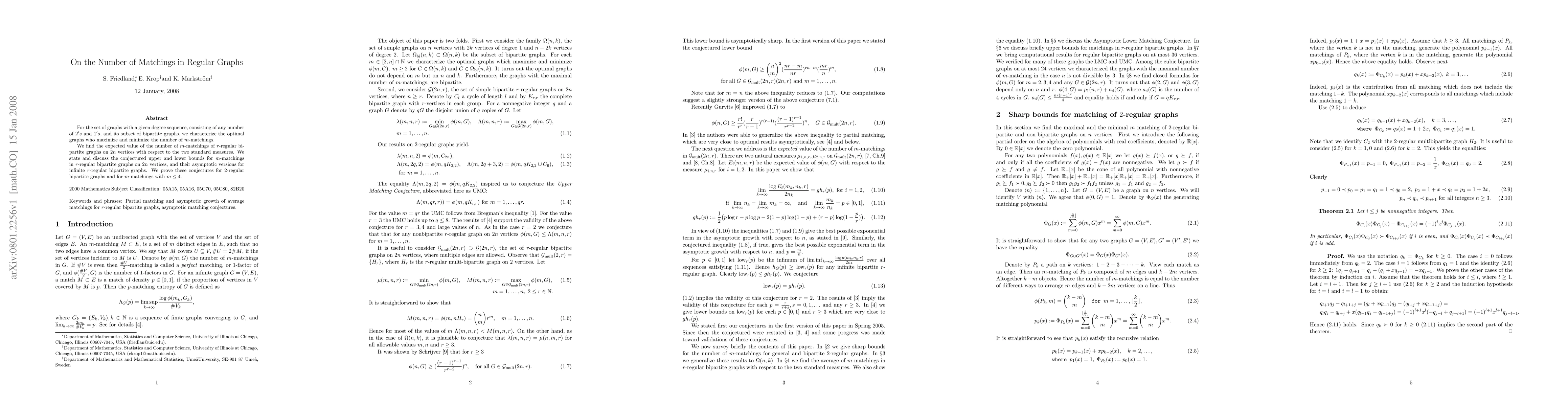 This work introduces new combinatorial techniques and probabilistic methods to study matchings in regular bipartite graphs, providing a more comprehensive understanding of their structure and properties.