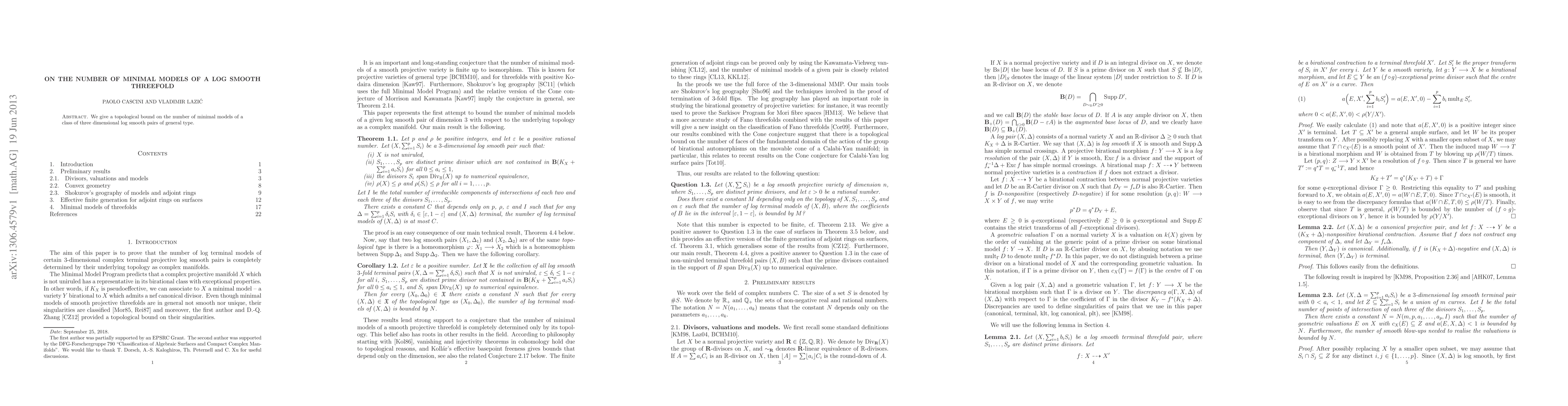 This paper provides a topological bound on the number of minimal models for a specific class of three-dimensional log smooth pairs of general type, contributing to the understanding of their geometric properties. The findings offer insight into the structure and diversity of minimal models within this category.