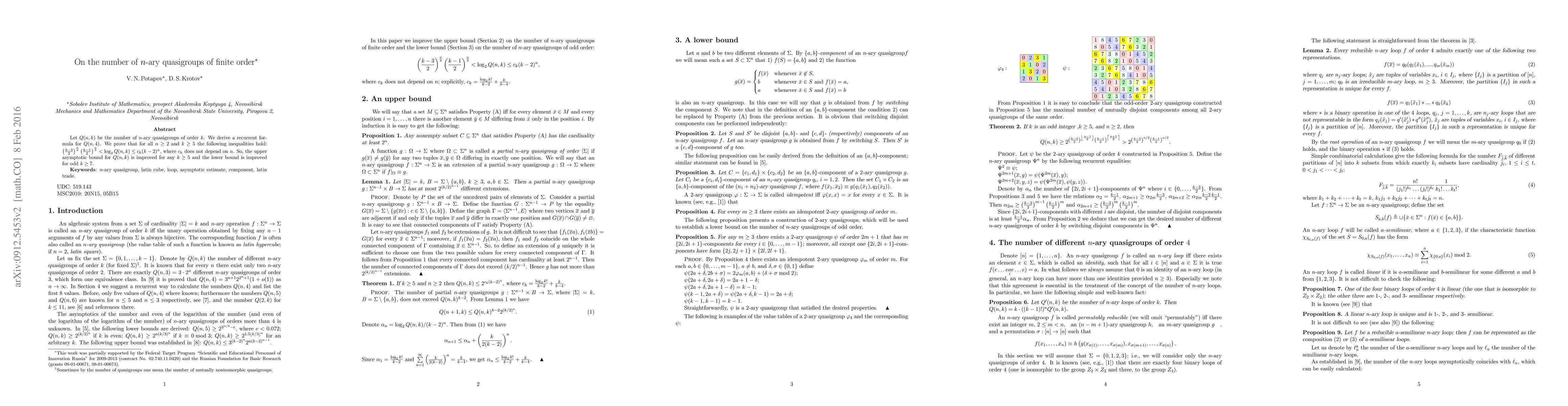 This paper derives a recurrent formula for the number of $n$-ary quasigroups of order $4$ and proves inequalities for $Q(n,k)$ for $n\geq 2$ and $k\geq 5$, showing improved upper and lower asymptotic bounds for $k\geq 5$.