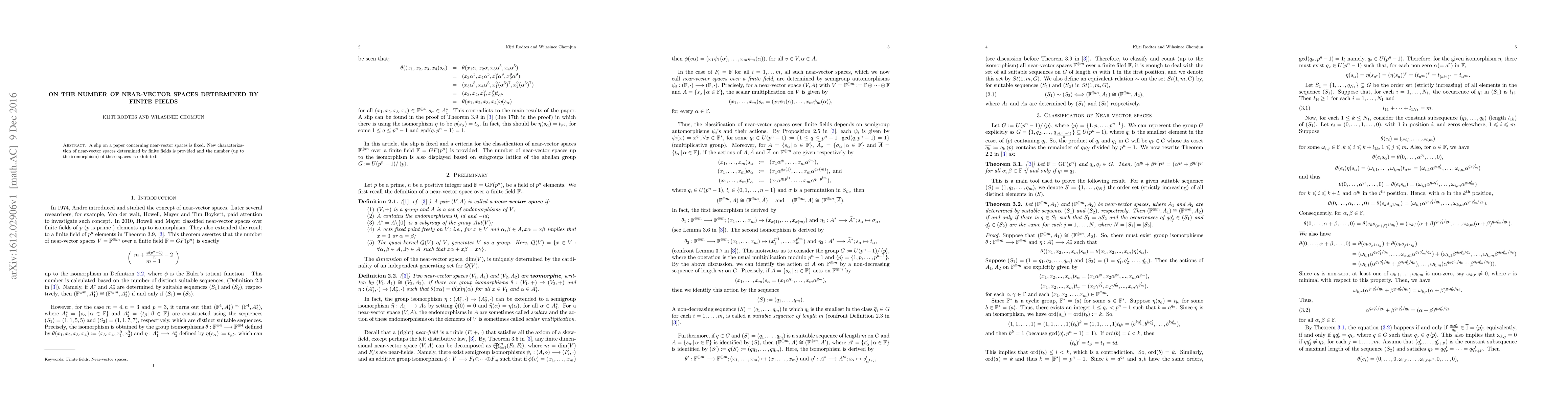 A slip on a paper concerning near-vector spaces is fixed. New characterization of near-vector spaces determined by finite fields is provided and the number (up to the isomorphism) of these spaces is exhibited.