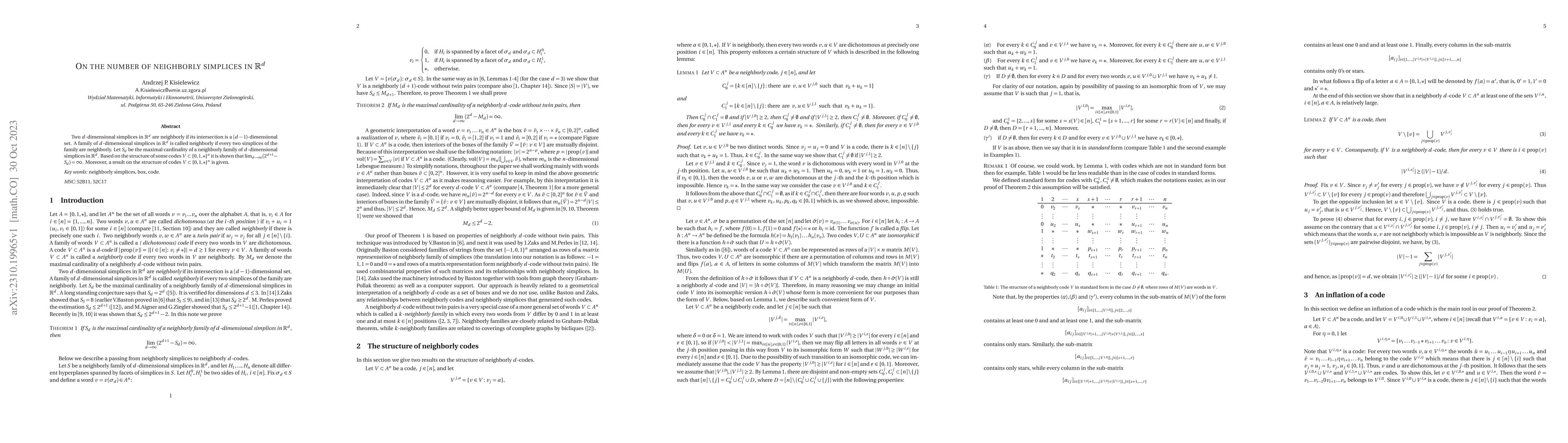 This paper explores the concept of neighborly simplices in $R^d$, establishing that the maximum size of a neighborly family of $d$-dimensional simplices, $S_d$, grows unbounded as $d$ approaches infinity. The result is derived using insights from the structure of certain codes in $\{0,1,*\}^n$.
