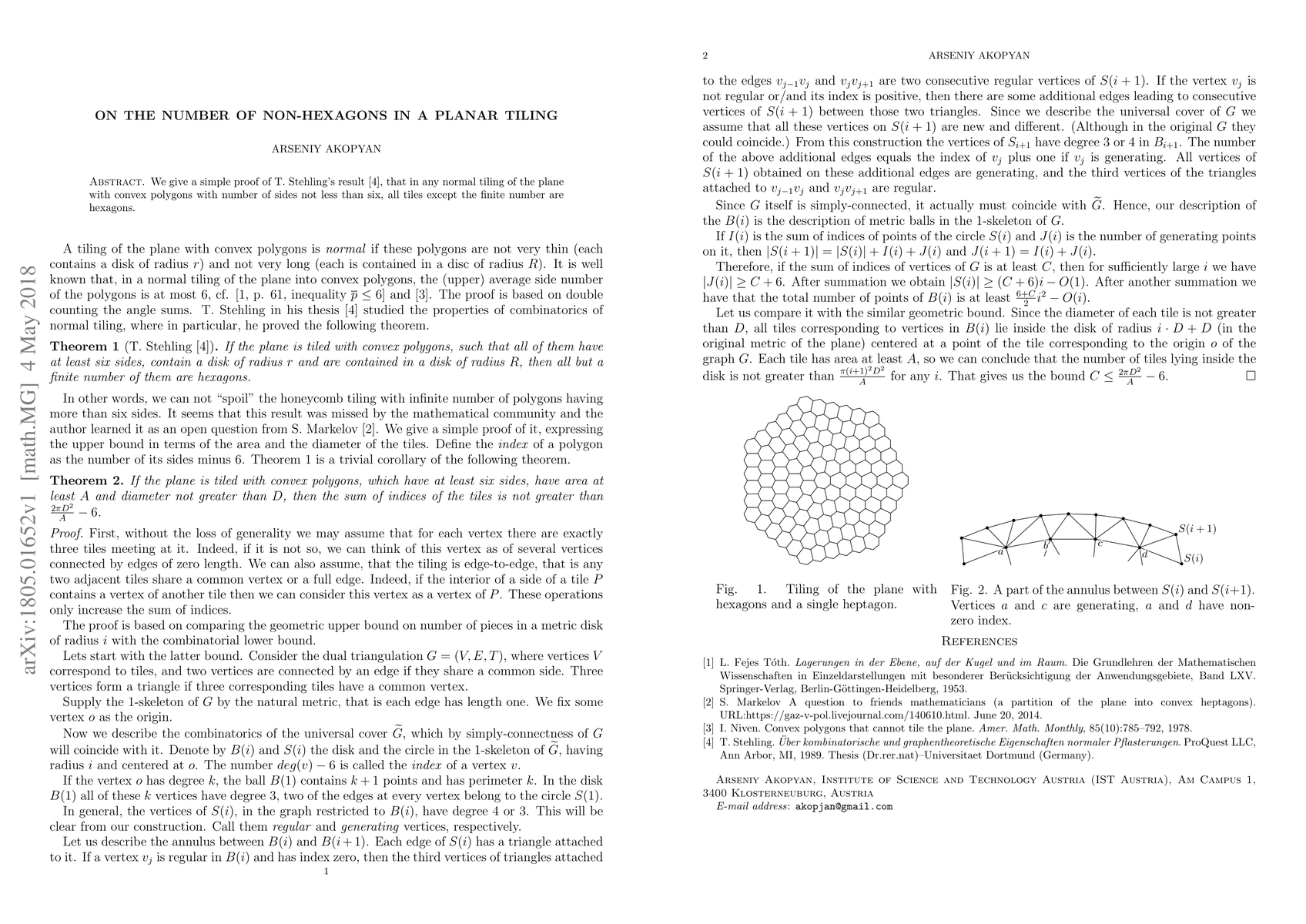 In a normal tiling of the plane with convex polygons greater than five sides, all tiles except a finite number are hexagons.