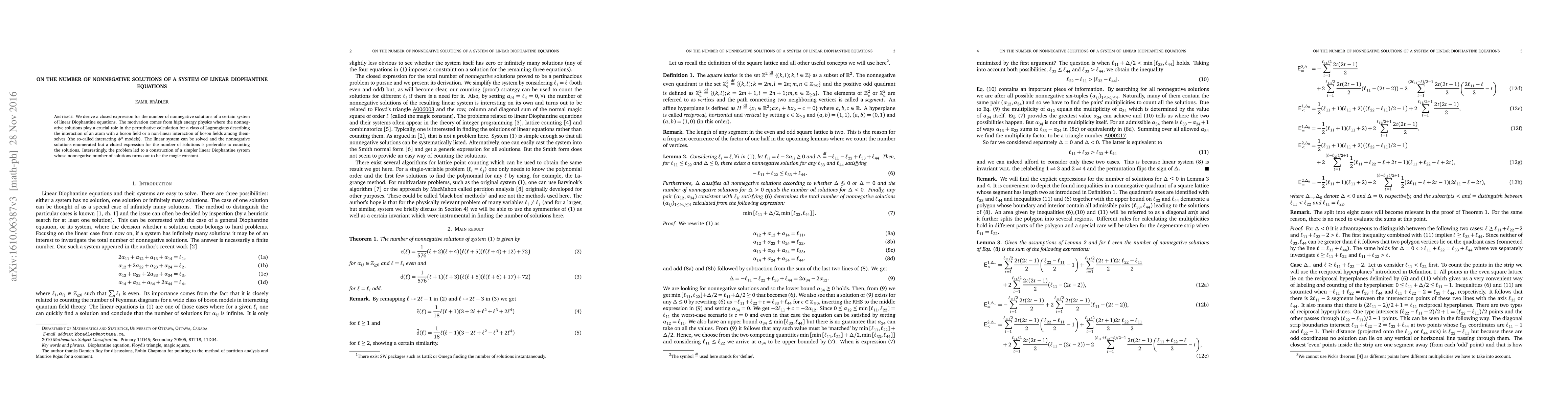 This paper provides a closed expression for the number of nonnegative solutions of a specific system of linear Diophantine equations, motivated by applications in high-energy physics for perturbative calculations involving interacting phi^n models. The derived formula simplifies the enumeration process compared to direct counting.
