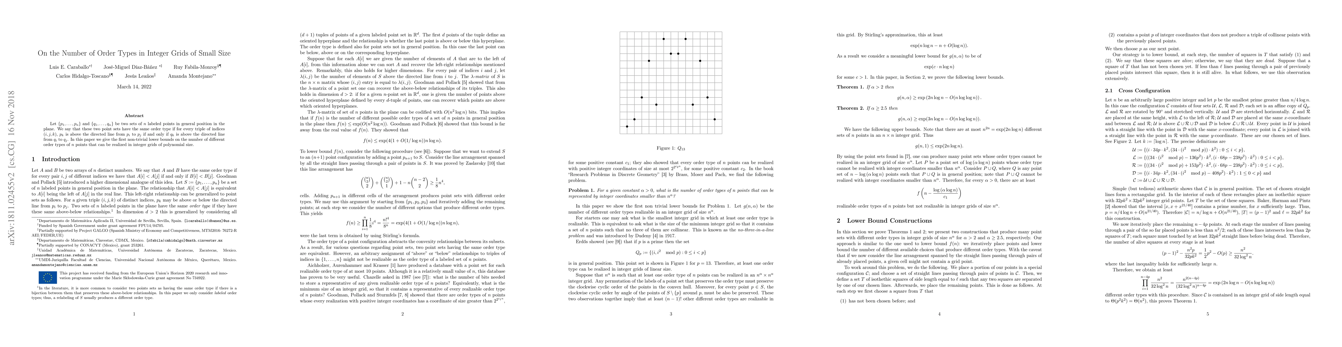 Research finds lower bounds on the number of different order types for n points in integer grids, providing insight into possible arrangements of points.
