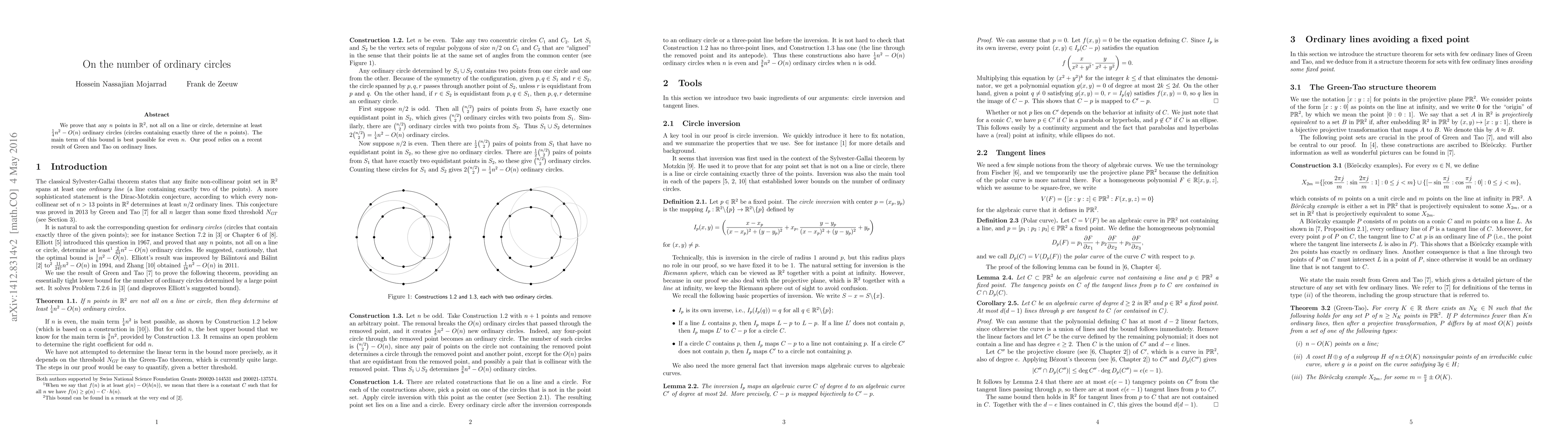 This paper proves that any $n$ points in $\mathbb{R}^2$, not all on a line or circle, determine at least $\frac{1}{4}n^2-O(n)$ ordinary circles, with the main term being optimal for even $n. The proof leverages a recent result by Green and Tao on ordinary lines.