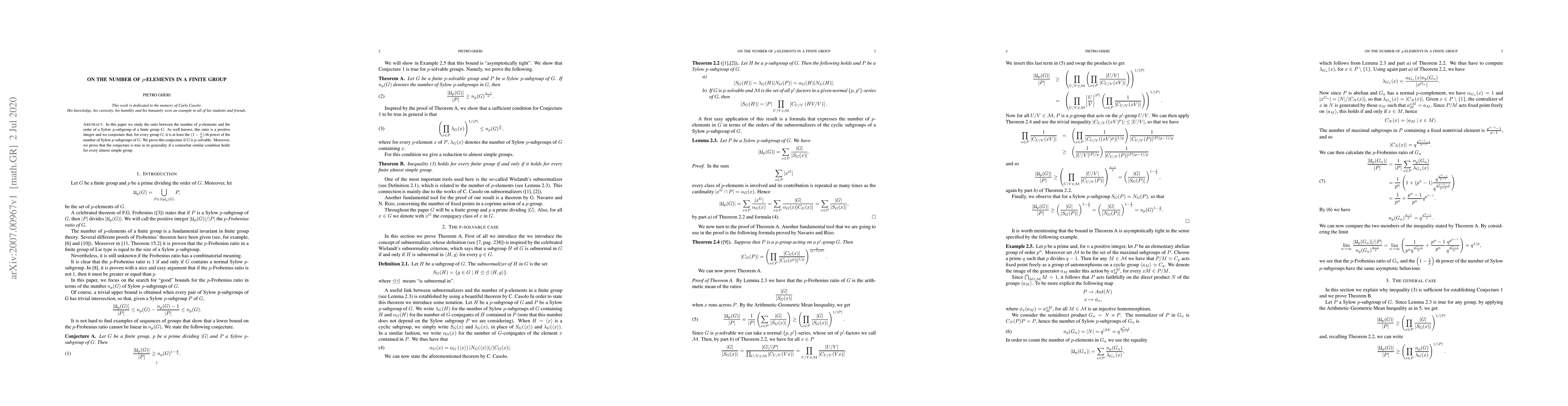 This research investigates the relationship between the number of elements of order a prime p and the size of Sylow p-subgroups in finite groups, proposing a conjecture about their ratio. The authors prove this conjecture for certain classes of groups and under specific conditions, advancing understanding of group structure.