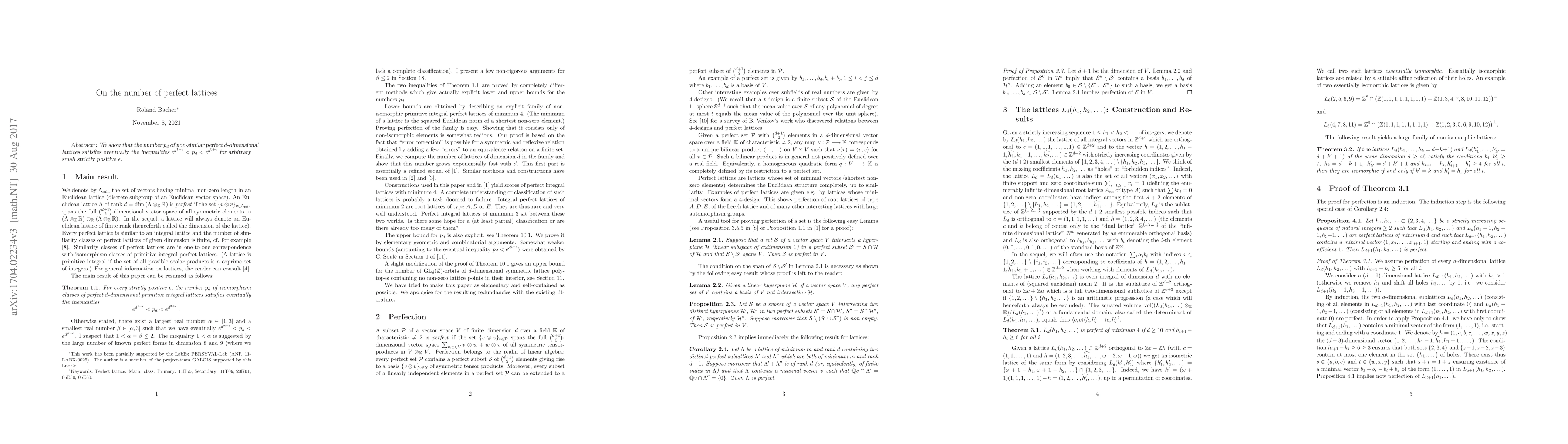 We show that the number $p\_d$ of non-similar perfect $d$-dimensional lattices satisfies eventually the inequalities$e^{d^{1-\epsilon}}