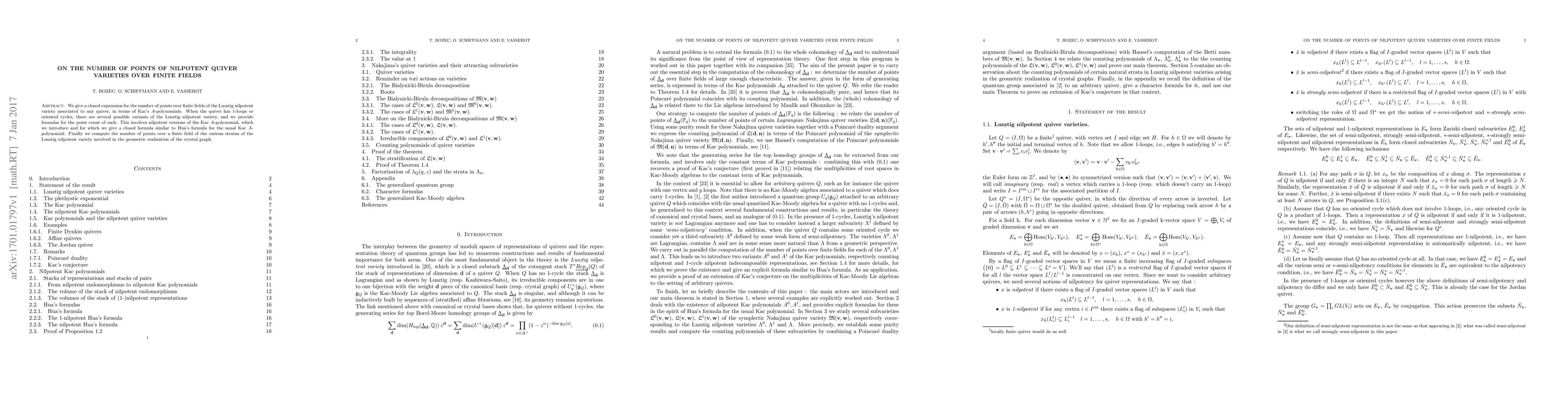 This paper provides a closed expression for the number of points over finite fields of Lusztig nilpotent varieties associated with any quiver, using Kac's A-polynomials. It introduces nilpotent versions of these polynomials and computes the point count for different variants when the quiver includes 1-loops or oriented cycles.