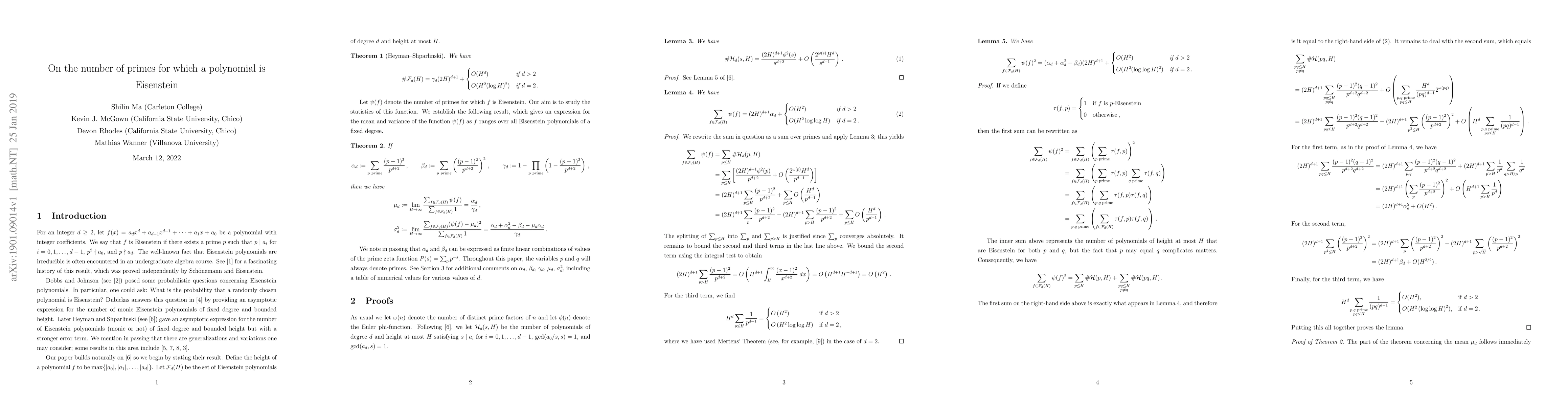 This paper provides expressions for the mean and variance of the function $\psi(f)$, which counts the number of primes for which a polynomial $f$ is Eisenstein, for each fixed degree, with polynomials ordered by height. The results extend previous asymptotic formulas for the number of Eisenstein polynomials.