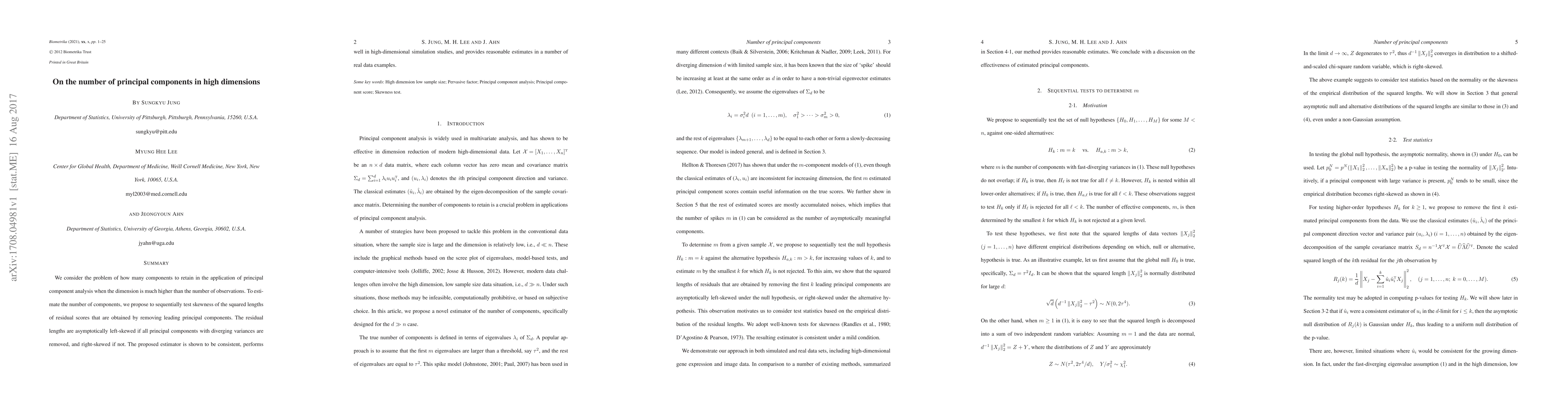 This paper proposes a method to estimate the optimal number of principal components in high-dimensional data by testing skewness of residual scores. The method is shown to be consistent and performs well in simulations and real data examples.