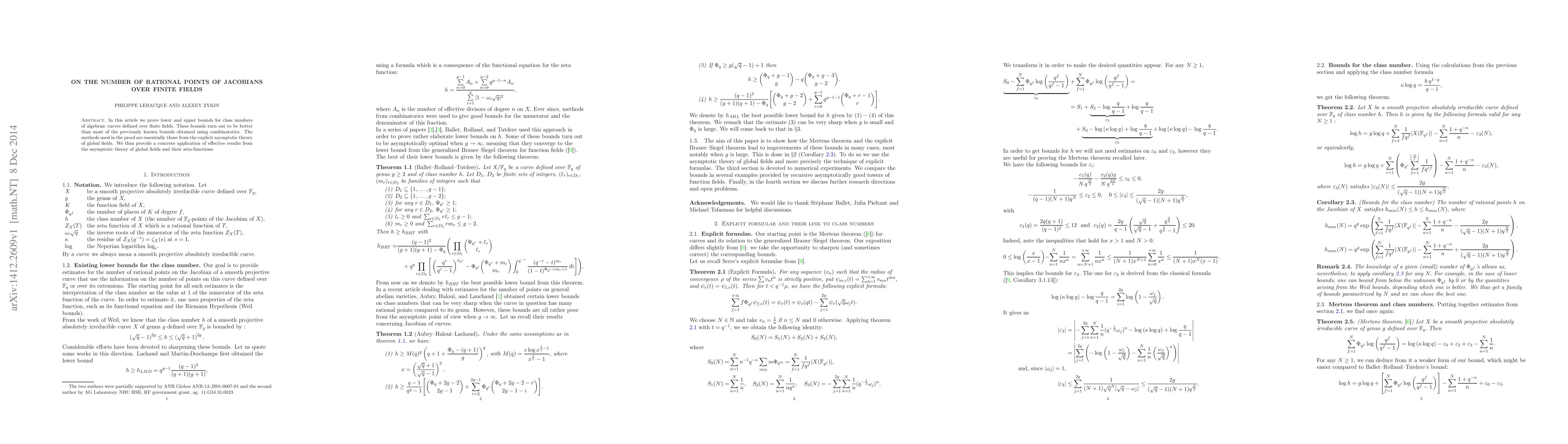 This paper establishes improved lower and upper bounds for class numbers of algebraic curves over finite fields, surpassing previous combinatorial bounds. The enhanced results leverage techniques from the explicit asymptotic theory of global fields and their zeta-functions.