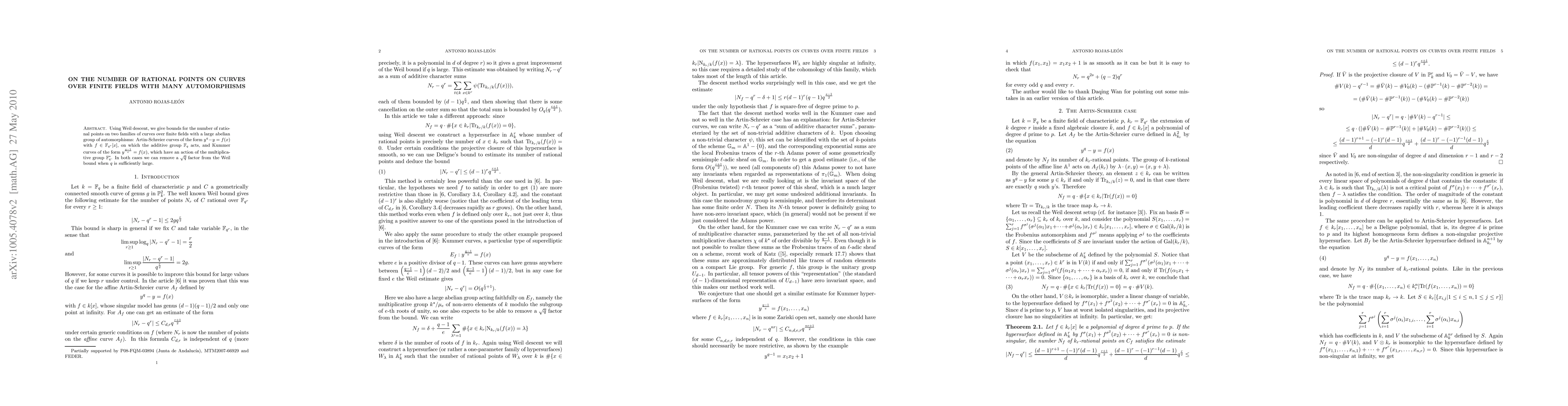 Summary: This paper uses Weil descent to establish improved bounds for rational points on two families of curves over finite fields: Artin-Schreier and Kummer curves, leveraging their large automorphism groups, and removes a $\sqrt{q}$ factor from the Weil bound for sufficiently large $q$.