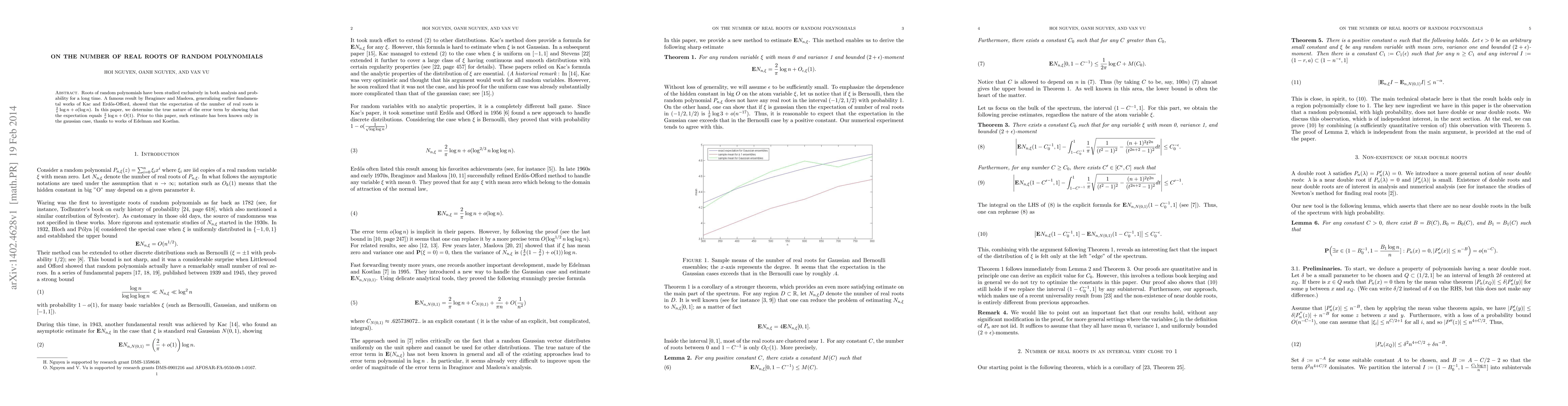 Roots of random polynomials have been studied exclusively in both analysis and probability for a long time. A famous result by Ibragimov and Maslova, generalizing earlier fundamental works of Kac and Erdos-Offord, showed that the expectation of the number of real roots is $\frac{2}{\pi} \log n + o(\log n)$. In this paper, we determine the true nature of the error term by showing that the expectation equals $\frac{2}{\pi}\log n + O(1)$. Prior to this paper, such estimate has been known only in the gaussian case, thanks to works of Edelman and Kostlan.