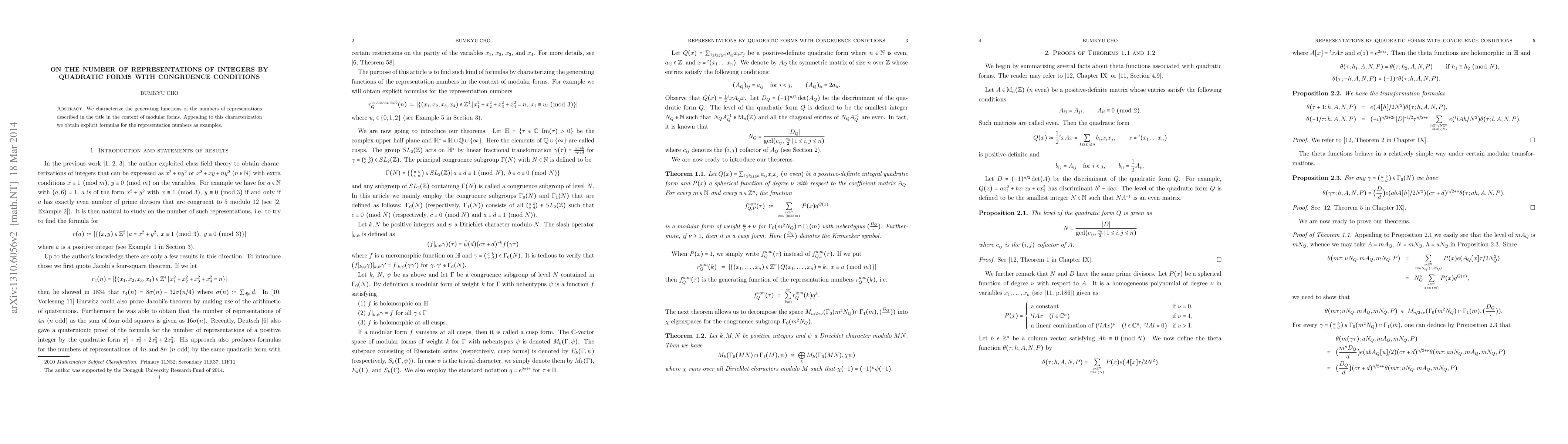 We characterize the generating function of the number of representations described in the title in terms of the theory of modular forms. Appealing to this characterization we obtain explicit formulas for the representation numbers as examples.