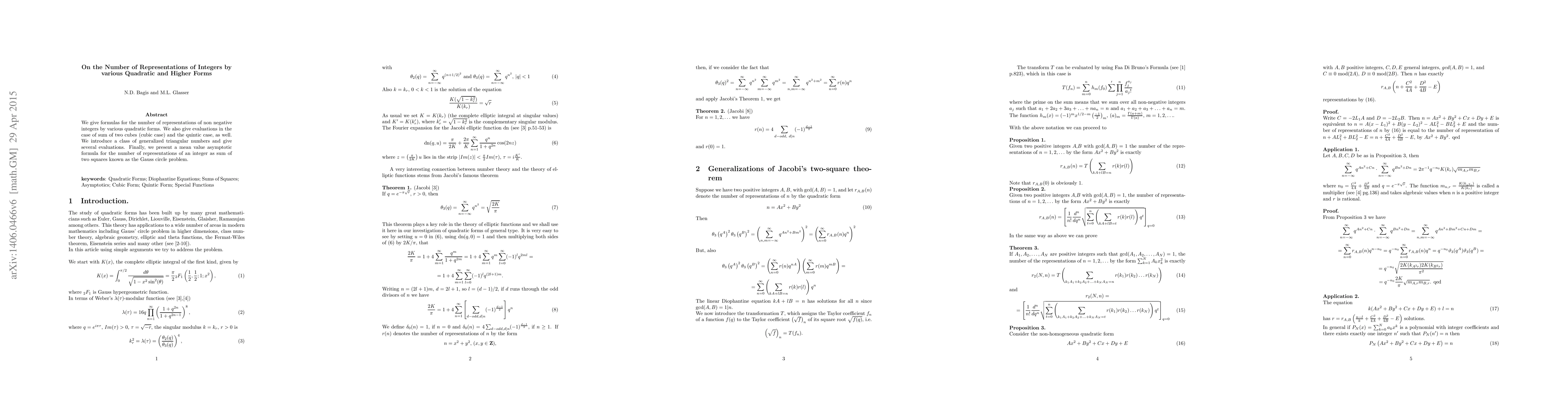 The paper provides formulas for counting representations of non-negative integers by various quadratic and higher forms, including sum of two cubes and quintic cases, as well as a mean value asymptotic formula for the number of representations of an integer as sum of two squares.